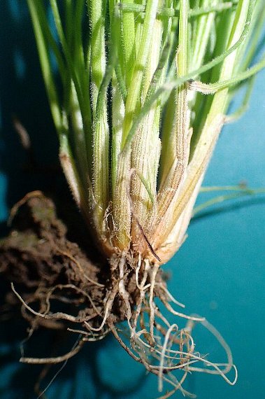 全体に毛が多く、葉鞘部でも目立ちます 葉鞘基部はやや褐色を帯びます