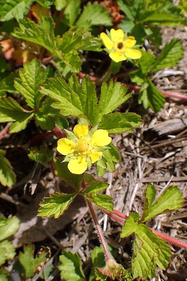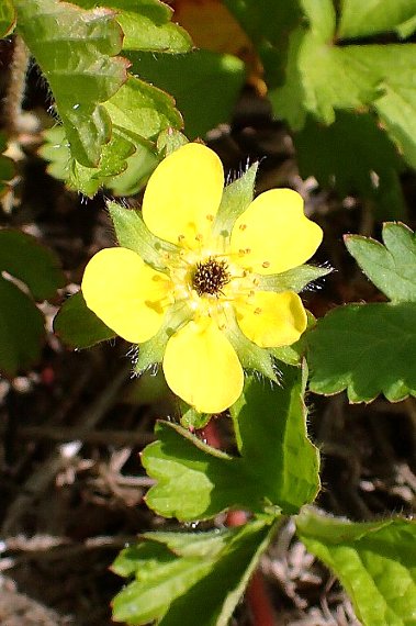 ヨーロッパ原産の帰化植物。荒地、道端、河原などに生える1年草又は越年草で、高さは20〜40センチ。茎は直立又は斜上し、全体に毛が多く、茎には密生する。葉は羽状複葉で、小葉は7〜11枚、卵形の托葉が2枚ある。 花は葉腋から柄を伸ばし付け、黄色で直径15ミリほど。花弁は小さくて先が凹み、花弁間に隙間がある。萼片は卵形で先が尖り、副萼片は小さい。花期は5〜7月。 〜徒然想〜 当初より本種としていたものの自信が持てず、?マークが付けられていた画像です。一因は葉の明確な画像がなかったことです。 しかし、改めて見直してみると、その他は本種の特徴と一致していると思いました。 全体に毛が多く、特に茎には開出毛や曲がった毛が多くあります。花弁は先が凹み、花弁間に隙間があり、萼片とほぼ同長です。比較的大きめの托葉も見られます。花数は少なめです。 以上により本種としておきますが、葉や萼片の撮影は宿題です。明るい田園地帯の畦地に生えていました。 −同じ科の植物−