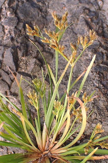 花序は2〜3回分枝して長さ5〜10センチになり、小穂は狭卵形、長さ3〜5ミリ、幅2〜2.5ミリ、汚れたわら褐色を帯び、鱗片は広披針形で長さ1.5〜2ミリ、果は長さ0.7ミリになり、表面の細胞は横長楕円形、花柱は2〜3岐し、柱頭と共に長さ1.5〜2ミリ、果時にも残る。8〜10月に熟す。関東地方、四国、九州に分布する。