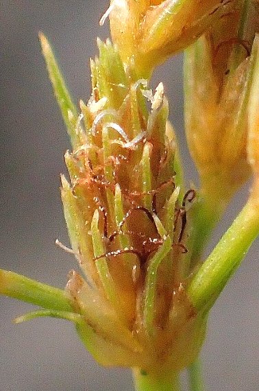 ただ、一見して本種は小穂が多く付き褐色、苞も葉も幅広く、両者の違いは明確と思いました。