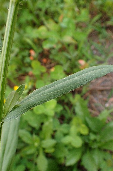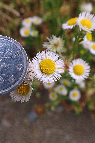 北アメリカ原産の帰化植物。荒れ地、河川敷、土手、丘陵、高原などに生える1〜2年草で、高さは30〜100センチ。茎は上部で分枝し、短毛がある。葉はへら形〜線状披針形で、全縁のものが多い。 頭花は散房状に付き、直径1.5センチほど。舌状花は白色。花期は7〜10月。 〜徒然想〜 ヒメジョオンとは、葉が全縁で鋸歯がない点で違いがあります。花の直径はやや小さいようです。また、茎の下部が分枝しないため、全体がスリムに見えます。それ以外はヒメジョオンと同じです。 なお、画像は、ヒメジョオンと思いながら撮影したものから本種と思われるものを抽出しました。したがって、本種の特徴が判って撮影していません。 近くの多摩川河川敷にもヒメジョオンと混生しているようなので、葉などの特徴をしっかりと撮影することを宿題としておきます。→画像を追加しました。 −同じ科の植物−