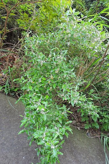これからクマガイソウやエビネを探しに入る山の駐車スペース脇に生えていました。高さは1.5メートルほどです。