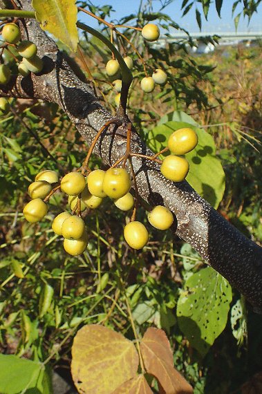 果実は緑色から秋になると黄色に熟し、葉が落ちても実は残ります。果実はサポニンを含み、人や動物には有毒で、注意が必要です。