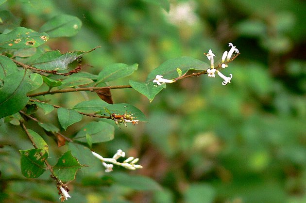 静岡県以西、四国、九州などの暖地を好む落葉低木で、高さは1〜2メートルほど。葉は互生し、卵形、全縁。 花は前年枝の先に頭状花序を出し、淡黄色の花を密に付ける。花には花弁がなく、蕚筒は長さ8ミリほど、先端は4裂する。花期は5〜6月。 〜徒然想〜 カキノハグサを探しにこの山に来たのですが、やや暗い林から尾根道に出ると木漏れ日の中に低木の花が見えるようになりました。 林に屈んで夢中でカキノハグサを撮り続けていたので、背を伸ばし、明るい日差しに目を細めます。 気がつけば、コツクバネウツギやガンピなどが、ちょうどいい高さに花を付けていました。気分を変えて、気軽に撮影です。でも気軽すぎたのもいけません。ピンぼけを多く作ってしまいました。 −同じ科の植物− |