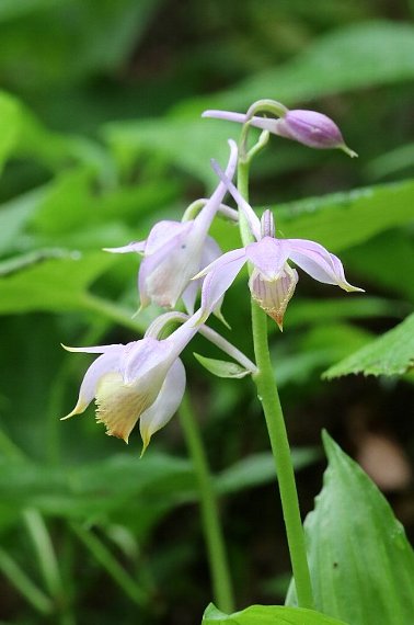 | ブナ帯の林下などに生える多年草で、高さは20〜40センチ。葉は数枚付き、縦ジワが多い。 花はうつむき加減に数個付く。蕚片は淡紅紫色で、唇弁の先は橙色。花期は6〜7月。中部〜四国に分布する。 〜徒然想〜 だいぶ前のことです。林道のゲートが開くのを待っていた時に、前の車の方と話をしたことが思い出されます。花観察の案内をしていた方で、案内をした後花が消えてしまうようで、もう案内はしないとぼやいていました。 当時は何のことか、いまいちピンときませんでしたが、今はよく分かります。キソエビネはその美しさから盗掘の絶好のターゲットで、自生地が知られると、たちまち盗掘されてしまいます。 自生地は固く閉ざしておかなければなりません。 私が住む東京から近い神奈川県の山奥で、見事なキソエビネの報告があります。15年前にその花を撮影した花仲間につい最近お会いしましたが、今も残っているだろうかと気にしていました。 残っているとも思えない気持ちと、残っていてほしい気持ちがあり、その自生地はあえてお聞きしませんでした。 近い神奈川の山奥で、ひっそりと美しく咲くキソエビネを想像するだけでも、うれしいものがあります。 本画像は、遠い岐阜の地で撮影しました。 −同じ科の植物− |