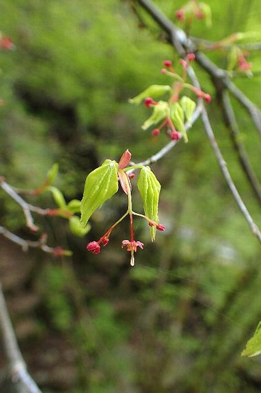 葉も花も十分に展開していません。同定は難しいのですが、一部に展開した葉が見られましたので、イロハモミジとしました。
