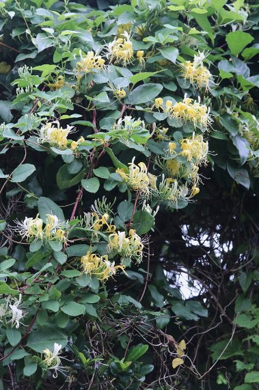 スイカズラと似ていますが、スイカズラは葉状の苞が見られるのに対し、本種にはそれが見られません。茎には毛は見られませんでした。