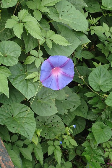 葉が丸く裂けないものとしてマルバアメリカアサガオがありますが、萼裂片がより長く全体に毛が多い違いがあります。