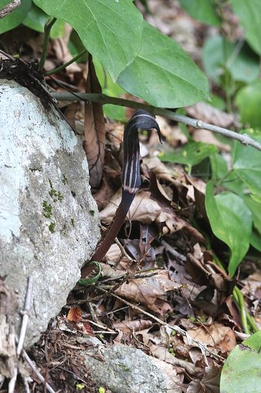 諦めてUターン、下ります。そこで目に飛び込んできたのが、黒いテンナンショウでした。