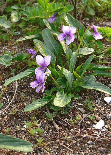 | スミレの海岸形で、砂浜や草地などに生える。スミレと同じく葉柄に翼があり、葉は無毛、光沢があり、表側に巻く傾向がある。 花は直径2センチほどで、濃い紫色〜淡い紫色で変化が多い。花弁には条が目立ち、側弁は有毛、距は円筒形だが、変化がある。花期は4〜7月。鳥取県以北の日本海側に分布する。 〜徒然想〜 「アマナスミレは海岸の山側に咲く」と、あるネットの記事には記載されていたが、この砂浜ではイソスミレと混在して咲いていました。 花の色と葉が全く違うので、両者はすぐに分かります。イソスミレとのツーショットも撮れました。 花は色むらがあり、残念ながらお世辞にも綺麗といえるものは多くはありませんでした。花色は濃淡があり、条が目立っていた記憶が残ります。 −同じ科の植物− |
