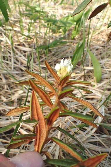 低地〜高山の湿原、礫地、火山灰地など、日当たりのよいところに生える常緑小低木で、高さは50〜80センチ。よく分枝し、こんもりとした形になる。