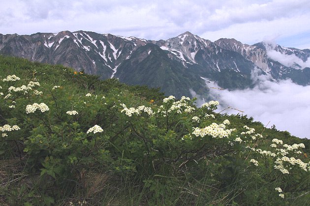 | 亜高山帯の蛇紋岩地や石灰岩地に生える落葉低木で、高さは2メートルほどになる。葉は倒卵状長楕円形〜円形で、先端は丸く、全縁又は先端に鈍い鋸歯がある。 枝先の散房花序に多数の花を付ける。花は白色で5弁、直径7〜10ミリ。花期は5〜7月。近畿地方以北の本州に分布する。 〜徒然想〜 これも白い花で、白飛びには苦労しました。特に、2008年の至仏山ではカメラを新しくしたので、その癖を掴むのに苦労しました。 ISO感度をオートに設定すると100〜800までの自動設定ですので、花の周りの暗さに合わせ感度を上げてしまいます。そのため、花は白く飛んでしまいました。こんなことは初めてで、びっくり、がっかりです。 カメラの説明書を読み直して、翌週再び至仏山に向かいます。ISO感度のオート解除、露出測定範囲の設定などで、癖に対応します。 −同じ科の植物− |