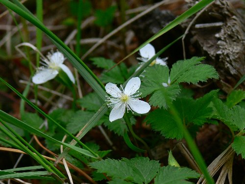 | 亜高山〜高山帯の針葉樹林の林内に生える多年草で、高さ5〜12センチ。茎にトゲは無く、地を這ってのびる。葉は3小葉だが、側小葉が深裂し5小葉に見える。 花は白色で、4弁または5弁、直径1.5〜2センチ。花期は6〜7月。北海道、本州中部地方以北に分布する。 〜徒然想〜 ここは、八ヶ岳の中腹、まだ樹林帯です。ミツバオウレンに混じって、5枚の葉をもつ白い花が次々と姿を見せます。バイカオウレンの名が頭に浮かびますが、花の様子がちょっと違いますし、花期も違います。 家に帰って花の名を調べるのも、これまた一つの楽しみです。 期待を込めましたが、出てきた名は「コガネイチゴ」。湿った地にふつうにみられるバラ科植物です。 大雪でもエゾノリュウキンカが咲き誇る雪解地でみられました。 −同じ科の植物− |