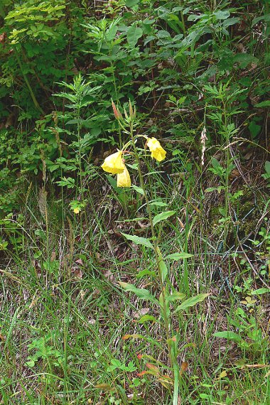 北アメリカ原産の帰化植物で、道端、荒地、河原などに生え、高さ1.5メートルほどになる。茎は一本立ちするか、枝を分ける。葉は卵形〜長楕円状披針形で、中脈はやや赤みを帯びる。 花は黄色で、直径2〜5センチ。花期は7〜9月。 〜徒然想〜 何度もこの道や他の場所で見ている花ですが、撮影していませんでした。HPを立ち上げてからはいつの日かアップしようと最近になって撮影した。安直な撮影で、花に申し訳ない気もする。 仲間にマツヨイグサやオオマツヨイグサの名が知られているが、「宵待草」や「月見草」の名の方が馴染みがあり、両者を同じものと混同している場合もあるのではないでしょうか。 「宵待草」は、ある著名な画家が「待宵草」よりも「宵待草」の方が語呂がいいとして歌詞に使われてしまったため定着してしまいました。 「月見草」は、メキシコ原産で夜に白い花を咲かせ、朝にはピンクに色付き萎んでしまいます。 マツヨイグサ、コマツヨイグサのように花が萎むと赤くなるものがありますが、この花とオオマツヨイグサは萎んでも赤くなりません。 -同じ科の植物- |