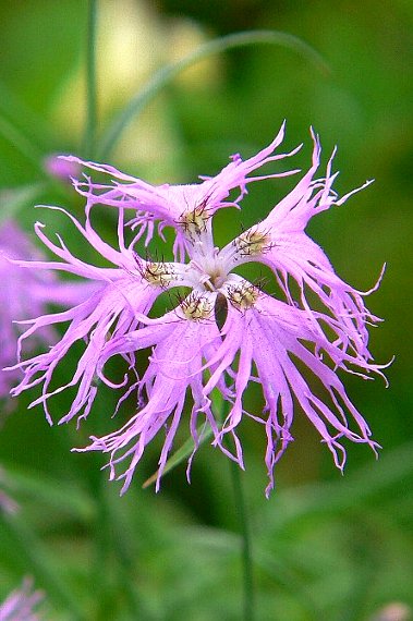 カワラナデシコの高山型で、いずれも5弁の花をもちますが、より花が大きく、深く切れ込みます。カワラナデシコが通常3対の苞を持つのに対し、本種は2対の苞を持つのが特徴です。