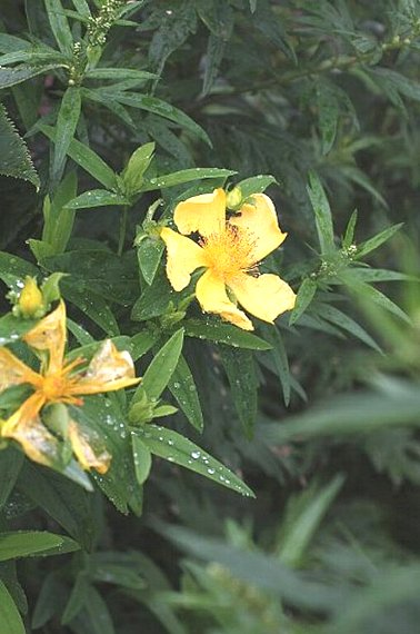 山地や高原などの日当たりのいい所に生える多年草で、高さは50〜130センチ。茎は直立して上部で分枝する。葉は対生し、披針形で先は尖り、基部は半ば茎を抱く。葉に黒点はない。 花は一日花で、枝先に集散花序に付き、黄色、直径4〜6センチ。花弁は5枚あり、ねじれて巴形になる。花期は7〜8月。北海道〜九州に分布する。 〜徒然想〜 八ヶ岳山麓や周辺の高原でよく見かけていましたが、花弁が濡れたり、きれいな巴形になっていなかったりで、アップできる画像がありませんでした。そのうちまた出逢えるだろうと、のんびり構えていた花です。 伊吹山山頂の一角に一塊りのこの花がありました。花の多くはすでに痛み、かろうじて巴形が残っている花を選んで撮影します。 虫たちも形のいいのが好きなのか、頻繁にファインダーに飛び込んできます。留守の間に、シャッターを押します。 −同じ科の植物− |