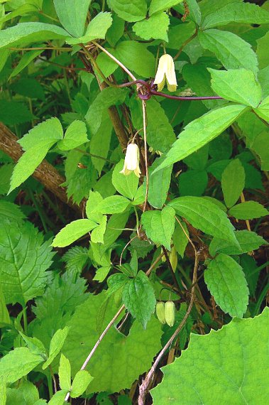 山地の林縁に生える木本性のつる性植物で、他の木に絡んだり、地を這う。葉は1回3出複葉で、小葉は卵形、鋸歯がある。 花は鐘形で下を向いて咲き、長さ2.5センチほど。萼片は淡黄白色で4枚、質は薄く、先は広がって半曲する。萼片の外面全体に白毛がある。花期は4〜5月。本州〜九州に分布する。 〜徒然想〜 サルメンエビネを探して幾つもの林を覗き込むうちに、とうとう山頂まで来てしまいました。葉は2株ほど見つかりましたが、花はみつかりませんでした。 最後の林でもみつからず、疲れ果てて下ってきたとき、林道脇にこの花がぶら下がっていました。名は知っていましたが見るのは初めてなので、うれしかったですね。 お陰で疲れが飛び、運も戻ってきました。落としたことに気付いたクローズアップレンズを、林に戻り見つけることができました。 この調子で、もう一度サルメンエビネを探して林の中に。・・・・・・見つかりませんでした! −同じ科の植物− |