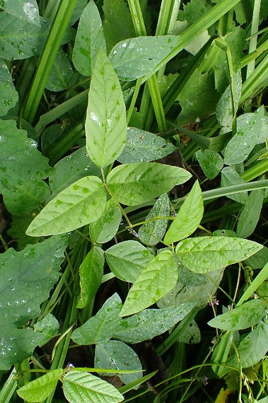 道ばたなどに生えるツル性の1年草で、茎には粗い毛が多い。葉は3小葉からなり、狭卵形〜披針形。 花は葉腋に3〜4個付き、長さ8ミリほどの蝶形で、淡紅紫色。花期は8〜9月。日本全土に分布する。 〜徒然想〜 カラスノエンドウのように道ばたや野原でよく見られます。両者とも非常にきれいと思っていますが、出逢いのたびにきれいに撮ろうと努めるものの、なかなか気に入った画像が残せません。まだまだ新しい花を追うという雑念が入っているということでしょう。 身近な花や一度撮り終えた花でも、出逢いときの想いによって、違う花に見えてくることがあります。そんな出逢いを多く求めて、花散歩を続けたいですね。 その後は、少し希少種を求めすぎたようです。身近な花たちにも想いを伝えなくてはならないです。 −同じ科の植物− |