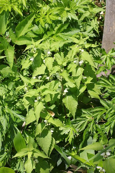 | 山野の道端 林縁の半日陰地などに生える多年草で、高さは30〜50センチ。葉は対生し、卵状三角形〜広卵形で、先は尖り、縁には粗い鋸歯がある。 花は上部の葉腋に唇形花を付け、花冠は淡紅紫色〜白色で、長さ3.5センチほど。花筒は基部で曲がって立ち上がり、上唇はかぶと状、下唇は3裂する。花期は4〜6月。北海道〜九州に分布する。 〜徒然想〜 オドリコソウ。きれいな名前ではありませんか。淡いピンクの着物を着た娘達が、笠をかぶって踊る姿を連想したら、あなたは相当なロマンチスト。私は・・・・・・?。 野山の木陰に群生するとありますが、高尾では沢沿いの草むらに群生し、明るい陽射しの中で踊っていました。 関東では主に淡紅紫色の花を見かけることが多いですが、北海道や北方の地では白花が当たり前に咲いています。 白花品をシロバナオドリコソウと呼びたいところですが、品種としてのその名は無いようです。ヒメオドリコソウの白花品には、シロバナヒメオドリコソウ(f. albiflorum)の名が付いています。 -同じ科の植物- |