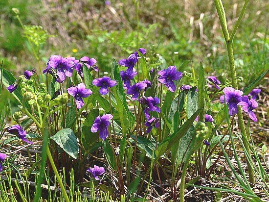耕作地の周辺、丘陵地、海岸など、日当たりのよいところに生える多年草で、高さ7〜15センチ。葉は斜め上に展開し、へら形で、先は丸く、葉柄にははっきりした翼がある。毛の有無には変化があり、無毛のものから全体に微毛に覆われるものがある。 花はふつう濃紫色だが、白色もある。唇弁の中央部は白地に紫条が入り、側弁には白い突起毛がある。距はふつう細長いが変化がある。 〜徒然想〜 スミレ科の同定にはいつも苦労する。HPを見ると、どうしてそんなに容易に見分けが付くのか、未だに不可思議だ。もっと、もっと学習しなければ、未だに名が付けてもらえずに私の花コレクションに眠っているスミレ達がかわいそうだ。 この長い葉を持つスミレでさえ、あとで知ったノジスミレと非常に似ている。 当初、裏高尾の尾根道でみつけた細長い葉を持つすみれをスミレとしていたが、指摘により間違いであることが分かり、全面的に修正しました。ご指摘をしていただいたHN−秋さんには深謝いたします。 三島市では、広い草原に点々と紫色の散らばり、壮観でした。暖かい陽射しを背に受け、腹這いになって撮りました。 新潟では、畑の縁が紫色に染まり、思わず車を停めてしまった。 福島では、(あれはタンポポだっただろうか)黄色い花とともに道端にふつうに生えていた。 いずれも陽射しが暖かく、スミレとの出逢いにふさわしい。 −同じ科の植物− |