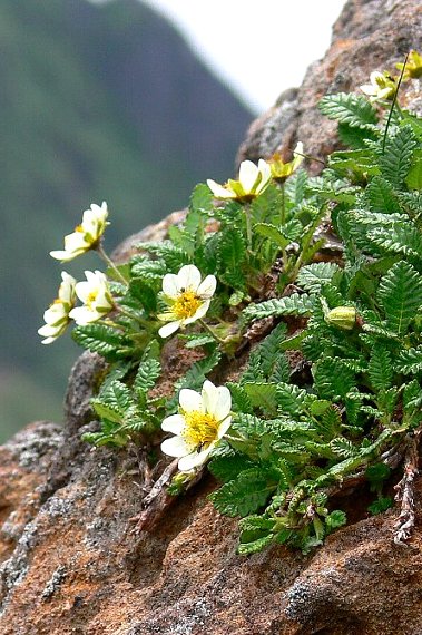 花は枝の先に1個付き、白色〜帯黄白色、直径20〜25ミリ、花弁は8〜9個、雄しべは多数、花糸は線状、花柱は頂生し、長さ4〜5ミリ。果実は痩果が集まった集合果で、痩果は長さ2.5〜3センチの羽毛状になった花柱がよじれて付き、のちにほぐれる。花期は7〜8月。北海道、本州中部地方に分布する。